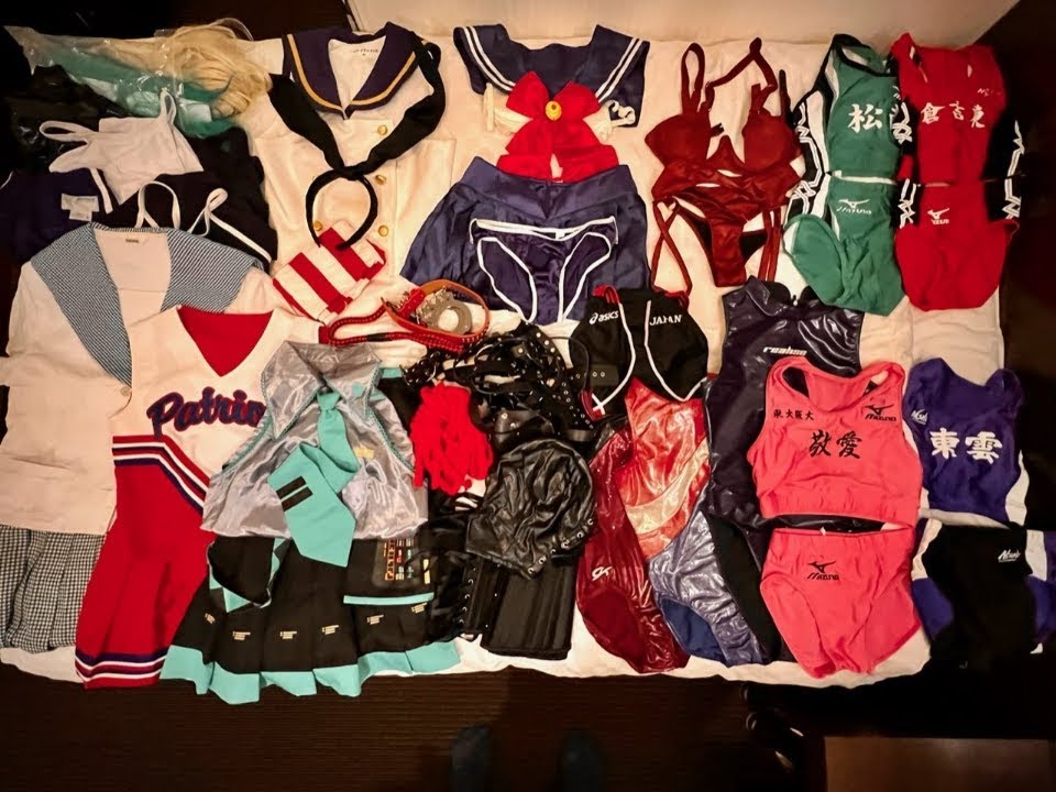 高級な島風コス、初音ミクコス、女子陸上セパレートユニ、テカテカのレオタード、メンズサイズのスク水、本物のセーラー服、本物のチアユニフォーム、ゴムパン、SM拘束具、おもちゃなどあります。