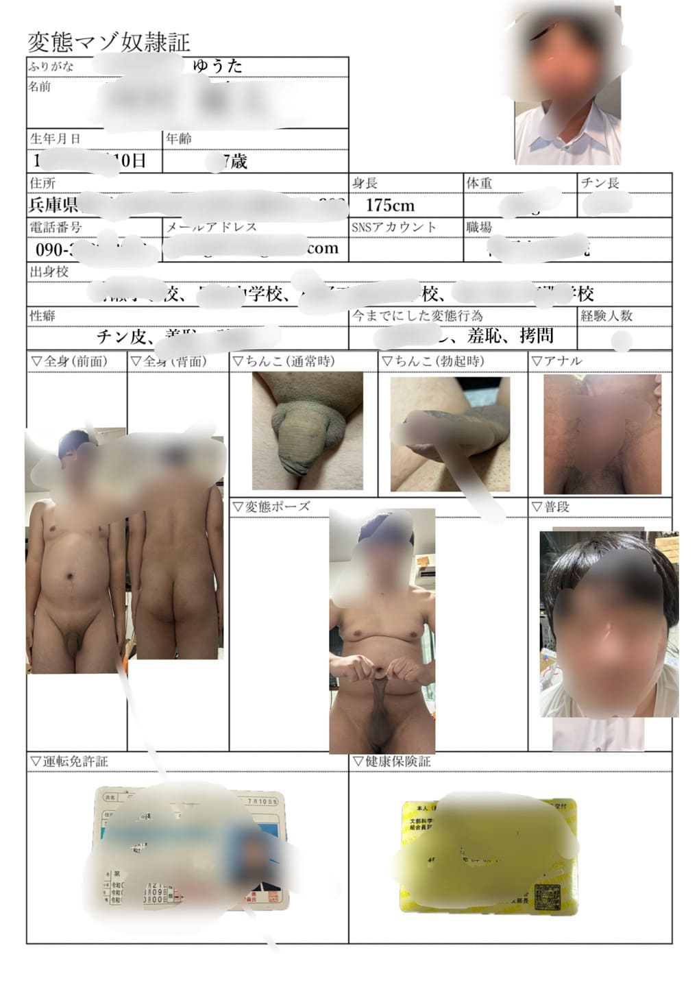 変態マゾ身分証送ります(全個人情報入り)
